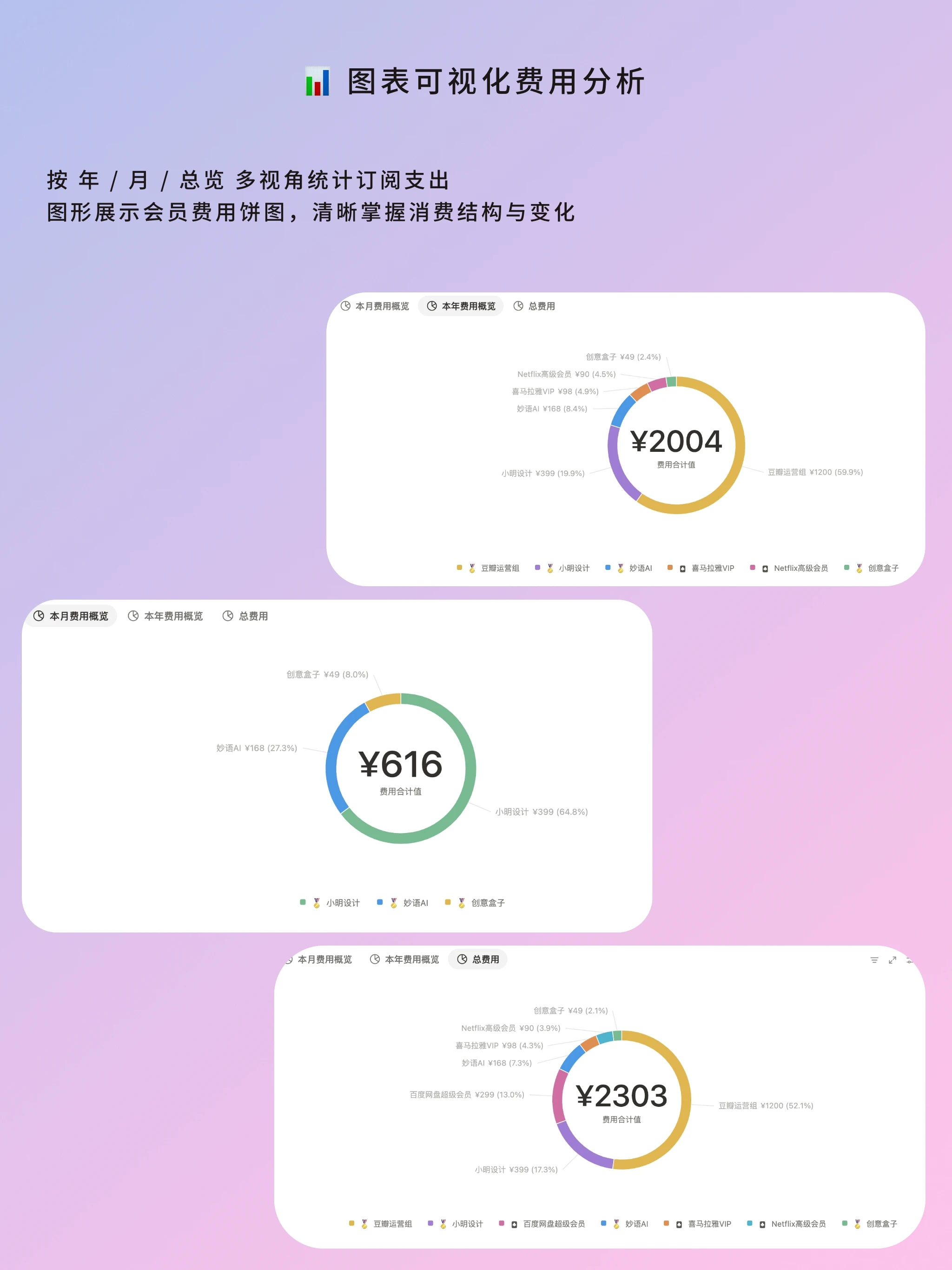 饼图可视化:清晰掌握各类订阅的消费结构与变化情况