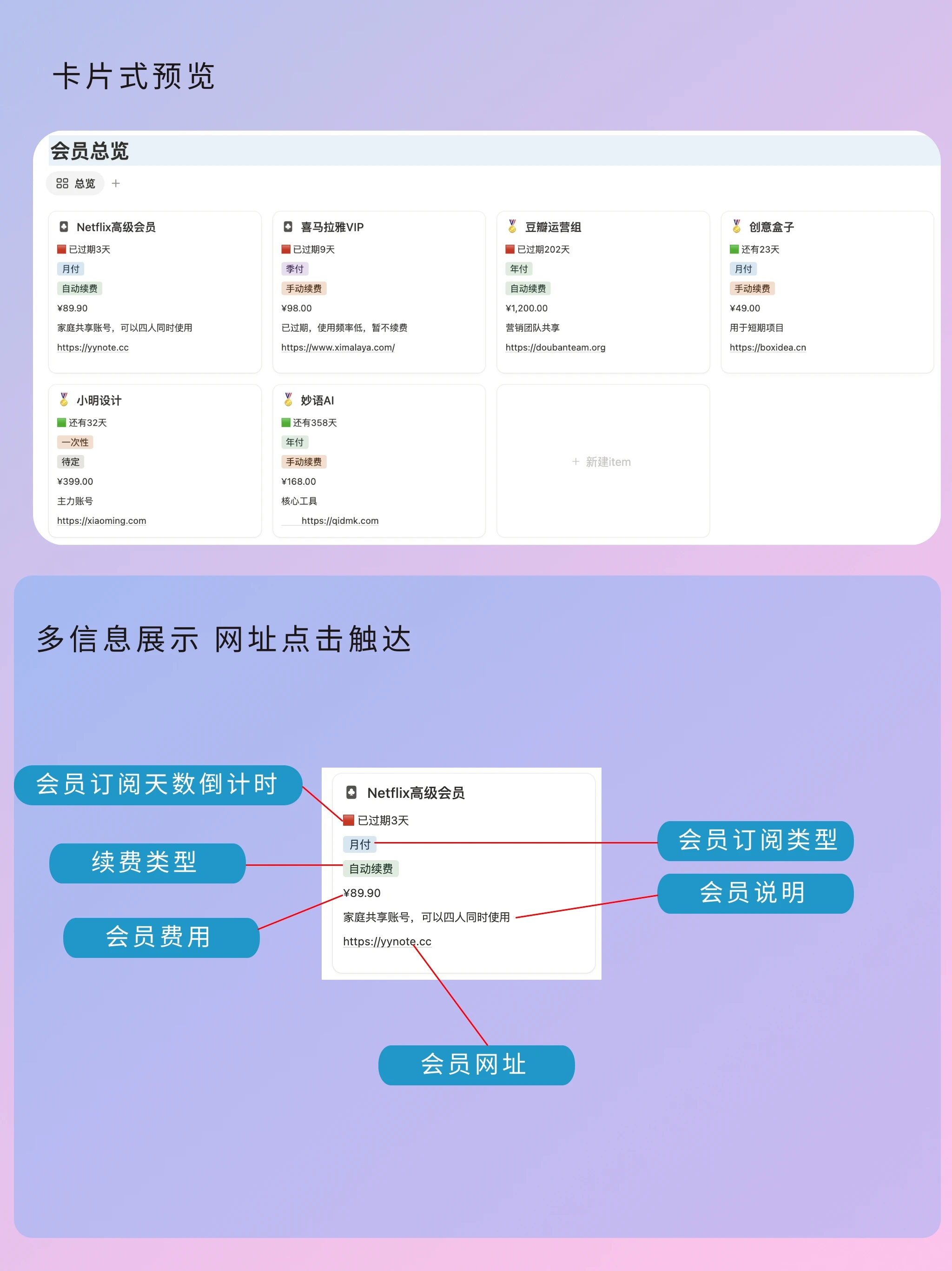 全方位掌控你的每一项订阅,让会员费用清晰透明、到期提醒不再遗漏,从此告别“忘记续费”或“重复扣款”的尴尬时刻。